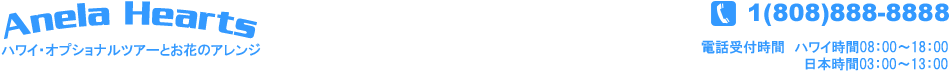 ハワイのオプショナルツアーならアネラハーツにお任せ下さい!アネラハーツでは、ハワイの人気オプショナルツアーの他、ご自由にカスタムメイドで行き先を決められるバンのチャーターも承っておりますので是非ご利用下さいませ。また、結婚式を挙げられた皆様のためにブーケをプリザーブドフラワーにに加工するプリザーブドフラワー体験レッスン、ご親族・お友達・お知り合いから新郎新婦へのお祝いのバラの花束のお届け、フルーツバスケットのお届けなども承ります。バラの花束、フルーツバスケットのお届けは使い方自由!お客さまの目的に応じて対応させていただきます。