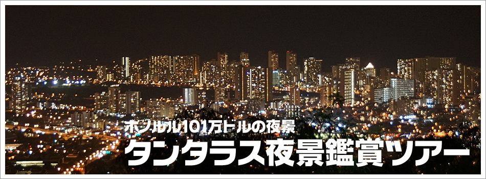 (ダミー文章要注意)地元の人達からは別名『恋人たちの丘』として知られる超有名夜景スポット、タンタラス。ハワイ大学のあるマノア一帯からワイキキ、アラモアナ周辺まで昼の顔とは違う景色をお楽しみ頂けます。マノアの高級住宅街に広がる家々の明かり、ワイキキ、アラモアナの街路灯やホテル、お店に煌めく明かりなどなどロマンチックな光景が広がります。